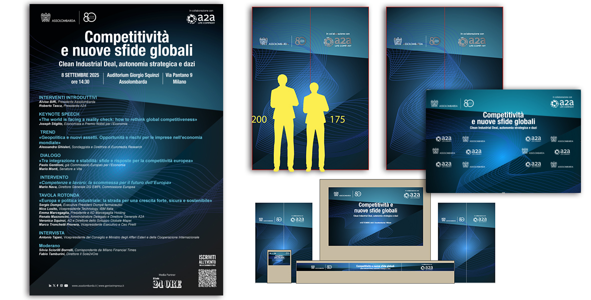 Il “Forum della competitività” di Assolombarda in collaborazione con A2A grafica evento – allestimenti – video – accoglienza backdrop – paline